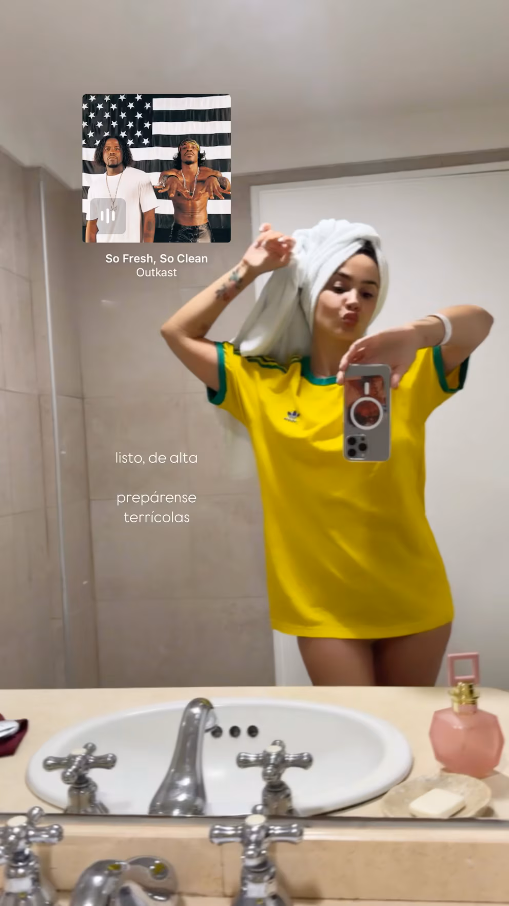 Esto lo anunció con una selfie frente al espejo del baño. Con una remera con los colores de la bandera de Brasil, una toalla en la cabeza y pura felicidad escribió: “Listo, de alta. Prepárense terrícolas”, fue como anunció esta noticia.